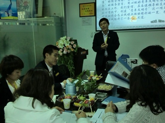 总经理金世来先生及后勤总监郭章文先生进行了热情的招待,随后我司青年文明号领导小组组长郭章文先生详细的讲解了我们在创建过程中的一些筹备工作及活动情况。在考察的过程中,共青团区委领导亲切的与我司部分业务精英交流文明号的范畴和理念。