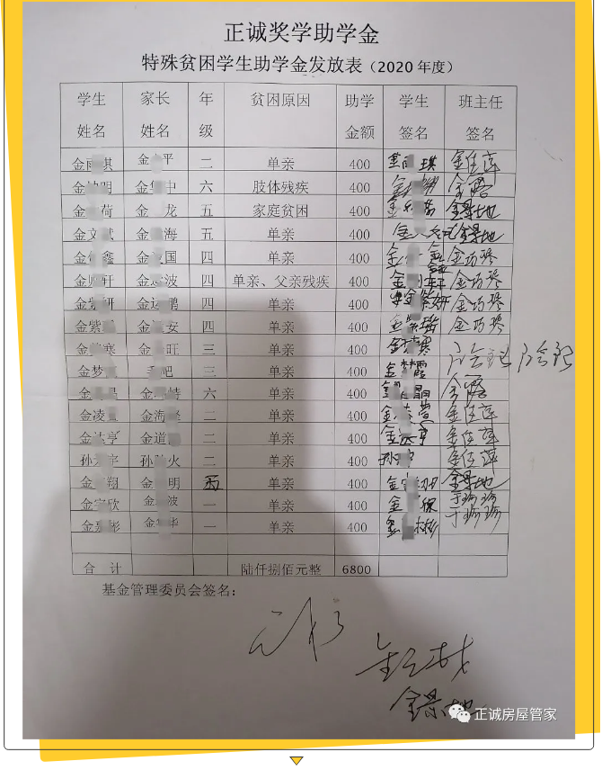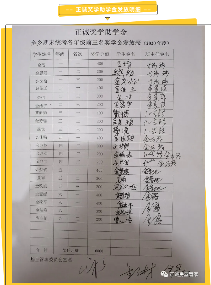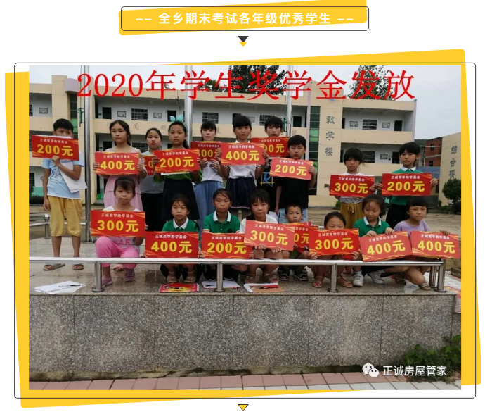 经过正诚奖学助学金监管委员会的统计、审核,对银宝湖乡2020年全乡期末统筹考试中鸣山小学各年级前三名的20名优秀学生、1名优秀教师,以及17名特殊困难学生,依据《正诚奖学助学金章程》分别发放了奖学助学金。