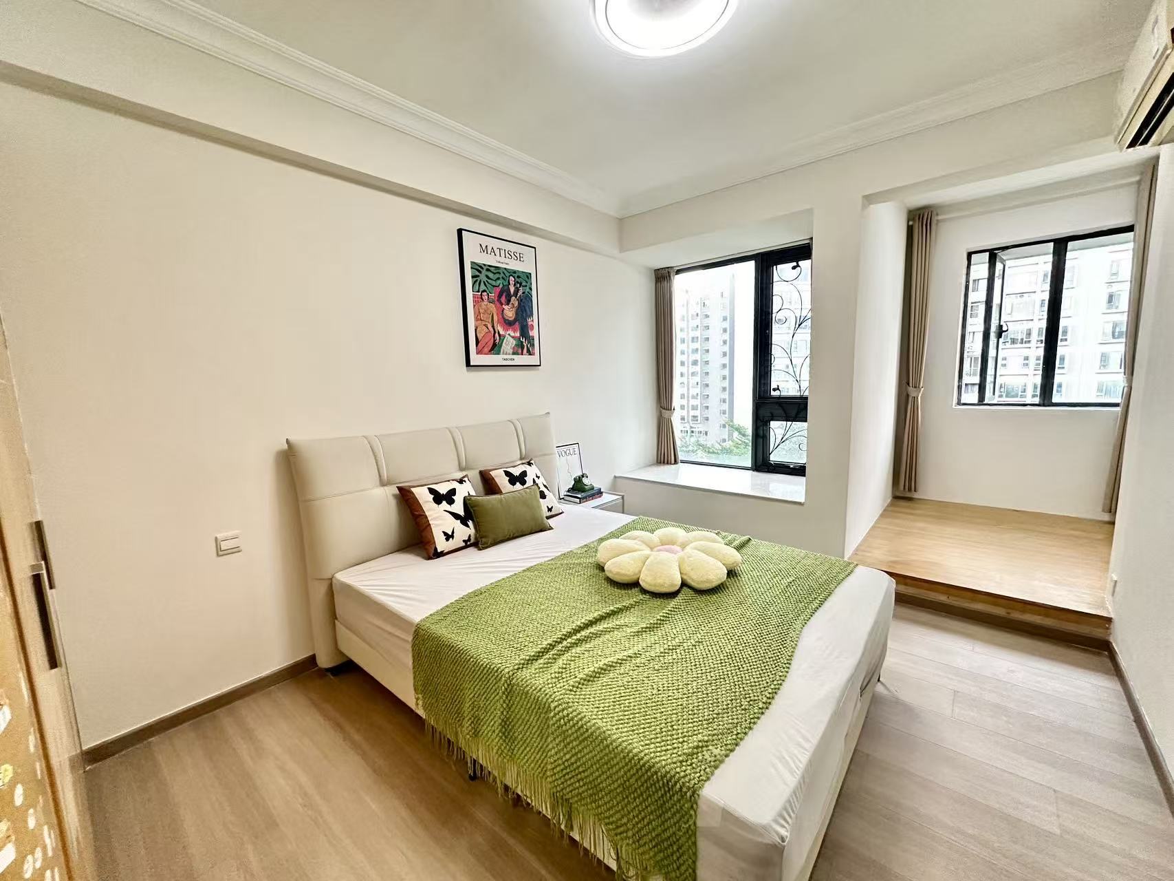 后来业主选择托管给我们,从设计到软装全流程包办:免费设计师上门,结合年轻租客的需求定制方案;专业施工队1-2个月极速完工,材料家具厂家直采省成本;最后还免费做软装布置,让房子彻底焕新。